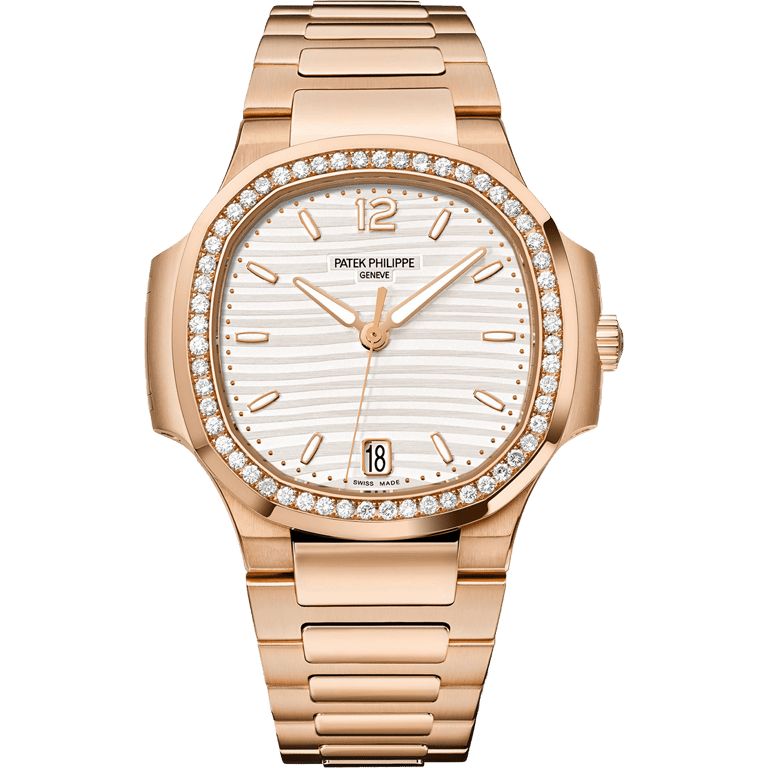 But what truly sets this watch apart is the bezel, which is set with 56 diamonds (~0.67 ct). This adds a touch of glamour and luxury to an already exquisite timepiece. The Nautilus fold-over clasp ensures a secure and comfortable fit, making it the perfect accessory for any occasion.